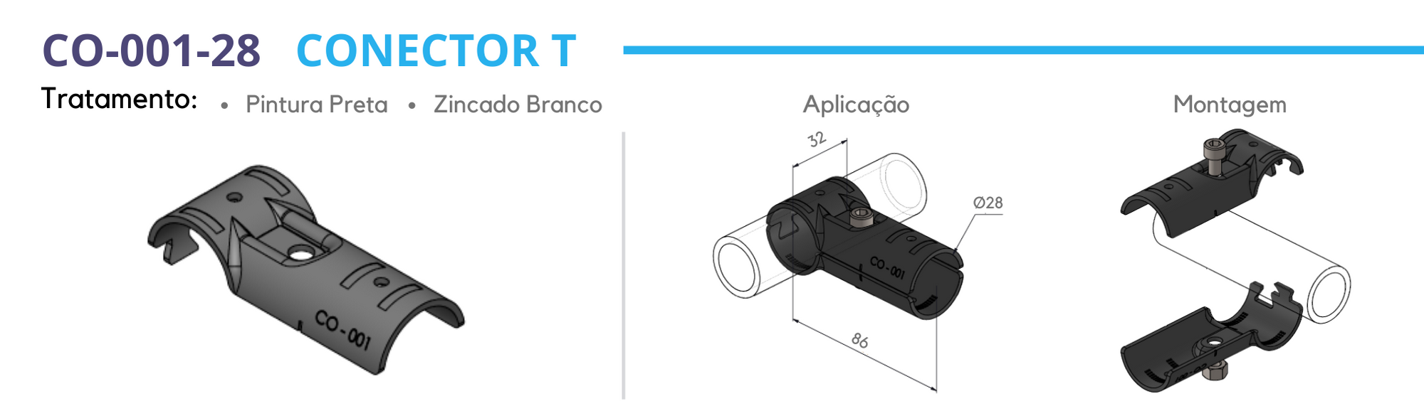 CO-028-28 CONECTOR T PARA FIXAÇÃO EM OUTRO CONECTOR T